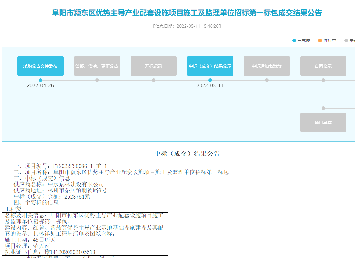 2022年5月11日,阜陽(yáng)公共資源交易中心傳來(lái)喜訊,我司參與的潁東區(qū)優(yōu)勢(shì)主導(dǎo)產(chǎn)業(yè)配套設(shè)施項(xiàng)目施工及監(jiān)理單位招標(biāo)第一標(biāo)包工程被確定為第一中標(biāo)候選人,中標(biāo)金額2523764元,這是我公司良好信譽(yù)與綜合實(shí)力的再次體現(xiàn)。